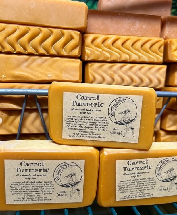 One of my personal favorites mainly because of the calming lavender & frankincense essential oil scent! This soap is made with coconut oil, shea butter, cocoa butter and a luxurious blend of skin nourishing oils like evening primrose oil, argan oil & rosehip oil. Organic carrot juice for vitamin C, Moroccan powder for its detoxifying properties. Powdered turmeric for surface skin inflammation & coriander essential oil for brightening dull skin. A lovely soap for the face and sensitive skin types. Essential oil blend of Frankincense, Lavender, Rosemary & Coriander. Pairs very well with the Golden Hour Serum and Lamb Tallow balm